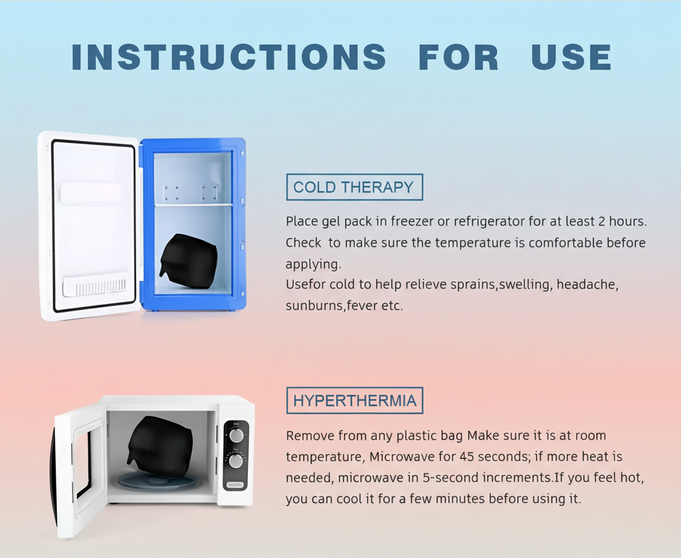 Place the cap in the freezer for at least 1–2 hours for cold therapy, or heat it in the microwave for about 20–30 seconds for warm therapy. Always check the temperature before applying to your skin.